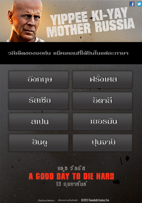 วลีเด็ดของจอห์น แม็คเคลน ในภาษาต่างๆ จาก A GOOD DAY TO DIE HARD