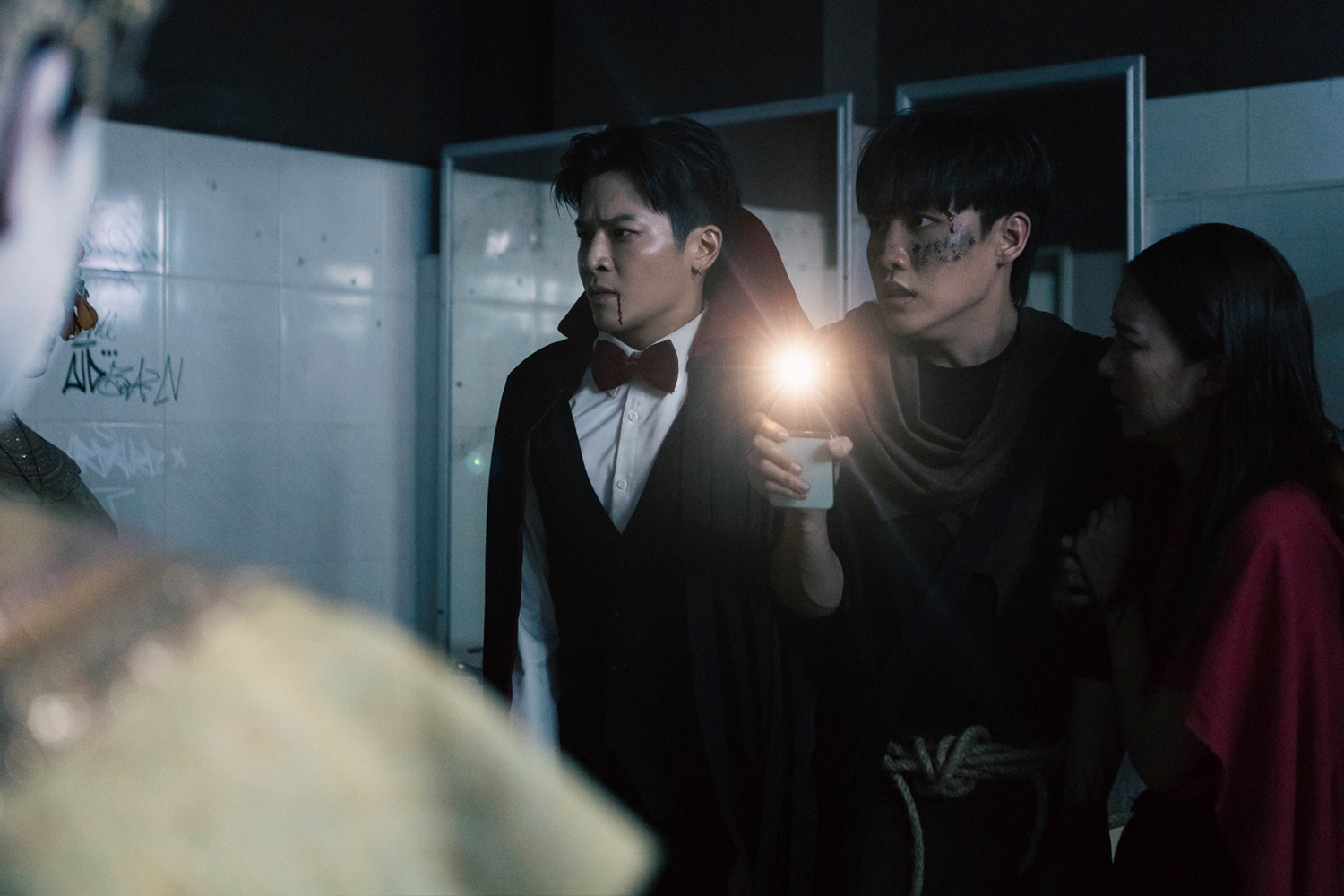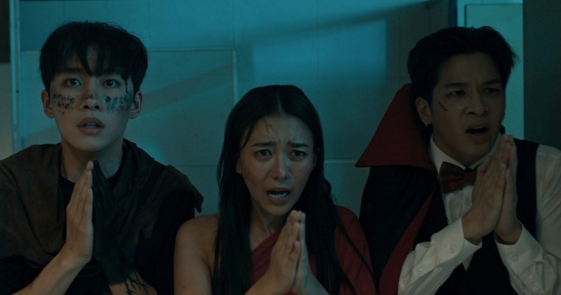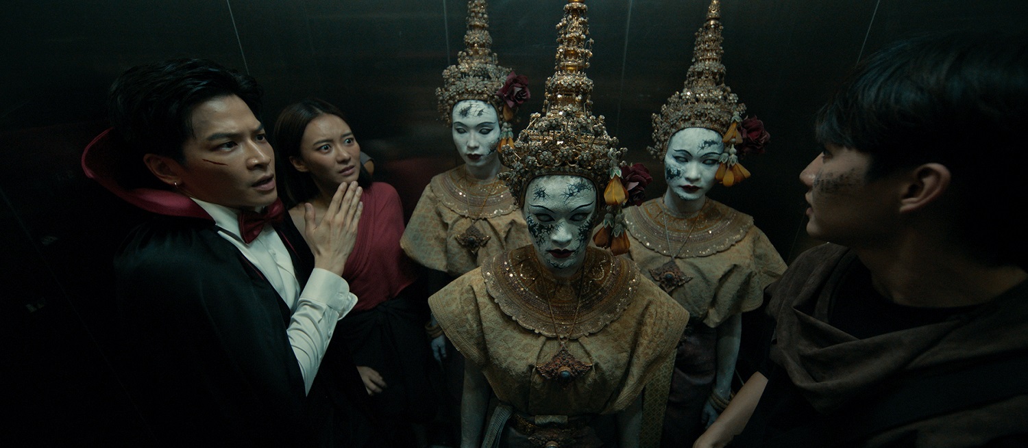 (มาร์ช จุฑาวุฒิ) “เรื่องนี้ตั้งแต่อ่านบทผมสนุกกับมันมากครับ เพราะมันทั้งตลกและน่ากลัว สถานที่ถ่ายทำก็ยังหลอนทำให้อินกับเรื่องได้มาก ปกติผมเป็นคนไม่ค่อยกลัวผี แต่ทีมงานเขาแต่งออกมาน่ากลัวมาก แล้วผมเป็นคนที่แพ้ทางนางรำด้วยเจอกี่ทีก็ขนลุก… เรื่องนี้ผมมาแสดงร่วมกับ ‘แพรวา’ และ ‘มาร์ค’ ที่เคยเจอกันมาแล้วจากซีรีส์เรื่อง ‘เคว้ง’ กับแพรวาเหมือนเราโตมาพร้อมๆ กัน ร่วมงานกันมาเยอะ เรื่องนี้เราเลยจูนกันติดเร็ว ความสนิทที่ต้องเป็นเพื่อนกันมันก็มาเองตามธรรมขาติ เข้าใจในการแสดงได้เร็วในระยะการทำงานที่สั้น ส่วนมาร์คก็ยังเป็นคนตั้งใจทำงาน พอมาร่วมงานกันอีกก็สบายเลย น้องเขาทุ่มเทมากๆ เขาขอผู้กำกับเล่นฉากสลิงเองด้วย”