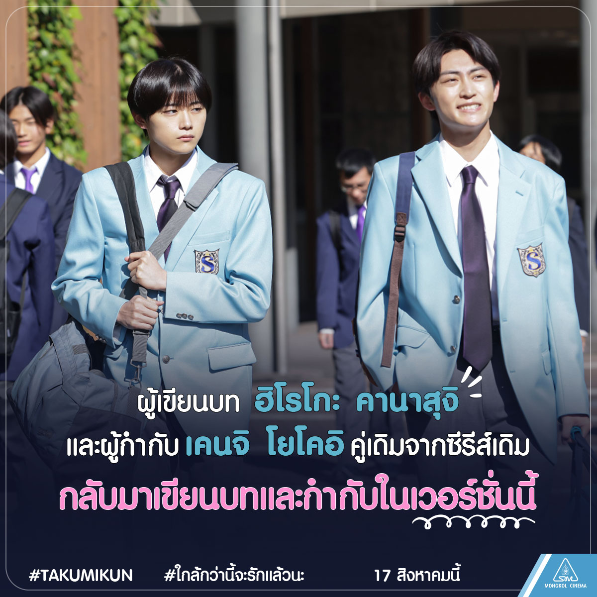 15 ปีมาแล้ว นับตั้งแต่ภาพยนตร์เรื่องแรกของซีรีส์ชุด Takumi kun Series ซึ่งดัดแปลงมาจากนิยาย boy’s love เรื่องดังที่ขายได้มากกว่า 5 ล้านเล่ม ปีนี้ภาพยนตร์ชุดใหม่กำลังจะเตรียมออกฉาย พร้อมด้วยนักแสดงนำชุดใหม่และเรื่องราวที่ไม่เหมือนเดิม